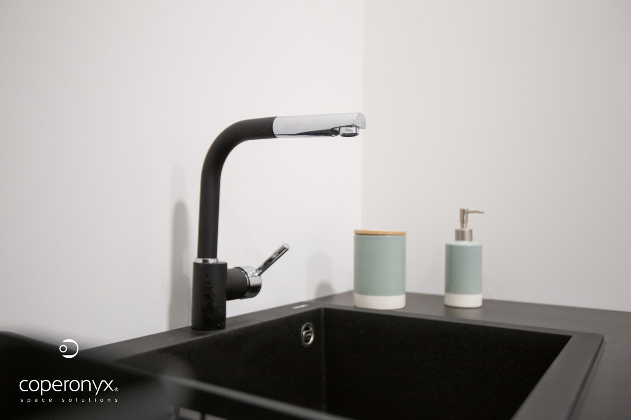 A ousada mistura de estruturas metálicas e mobiliário executivo compõe assim um conceito industrial, que contempla ainda uma copa e instalação sanitária no interior com apontamentos diferenciadores.